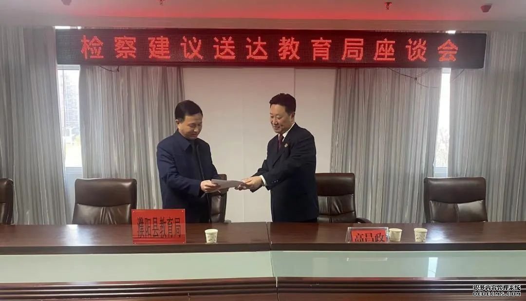 为贯彻落实最高人民检察院“参与社会治理检察建议”要求。11月15日,濮阳县检察院党组成员、副检察长高昌政一行向县教育局就民办教师资格审查不力问题送达检察建议。县教育局党组成员、副局长靳俭英等负责同志参加座谈。
